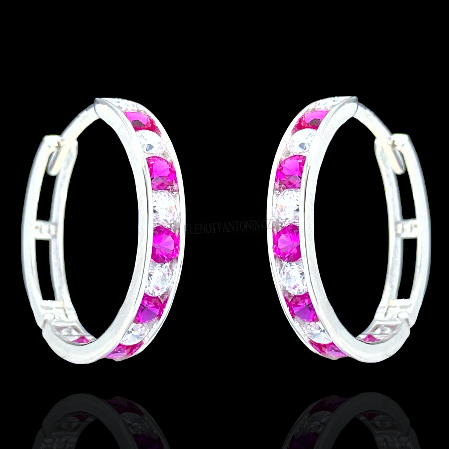 - Náušnice kruhy z bílého zlata s růžovými a bílými kameny Ø18 mm, 192705 (Au 585/1000, 2,22g)