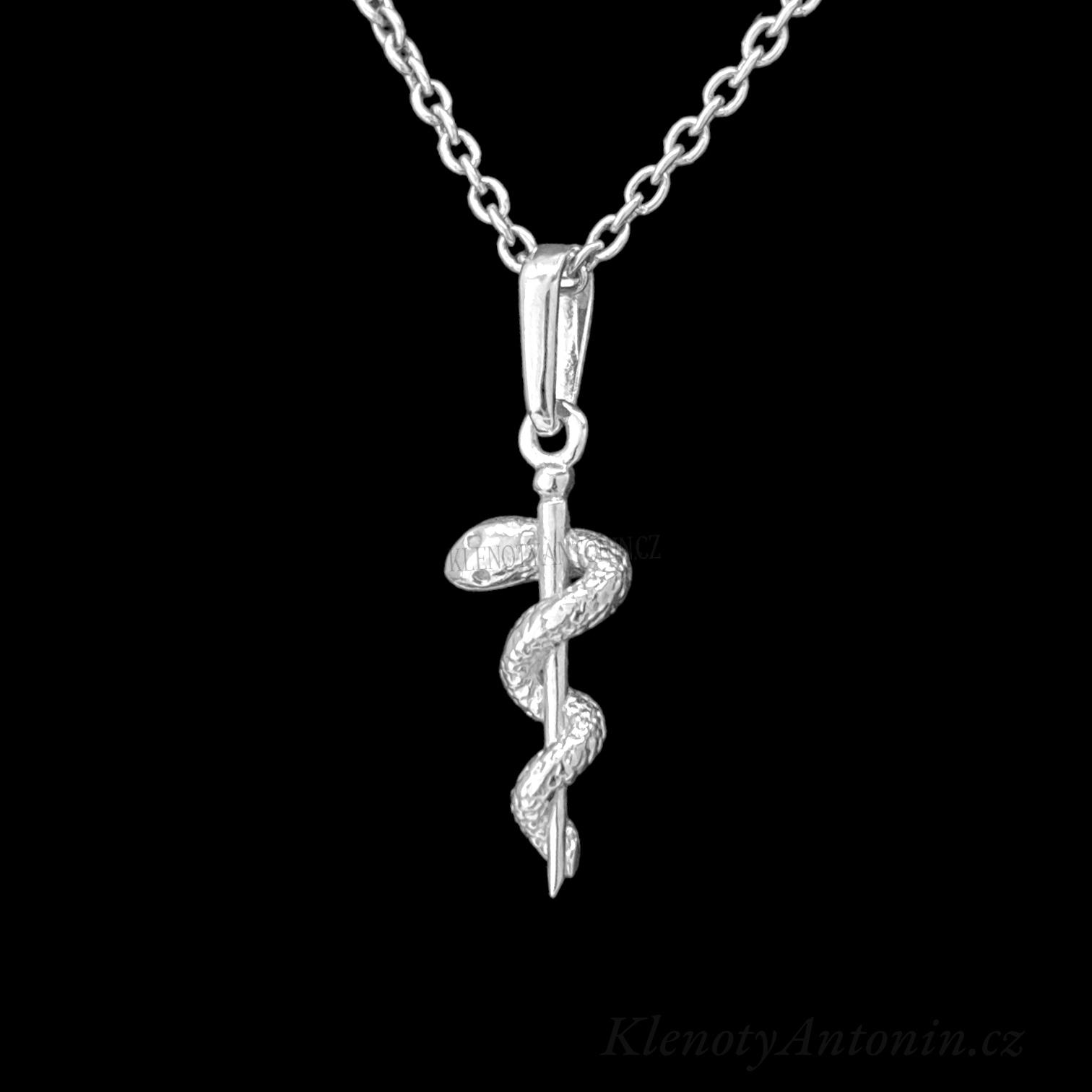 Přívěsek znak lékařů z bílého zlata (Aeskulapova hůl)