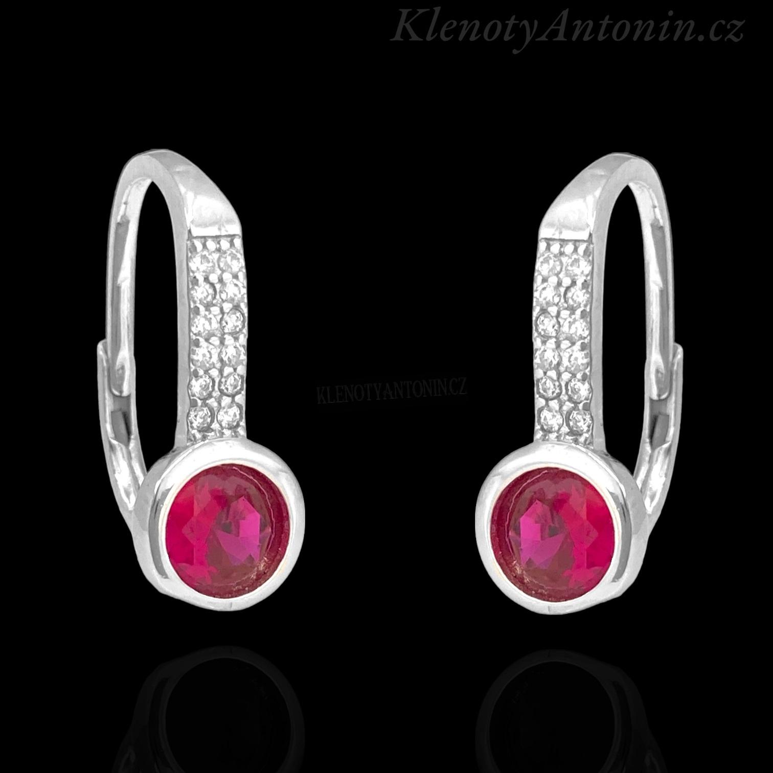 Stříbrné visací náušnice s růžovým kamenem a zirkony