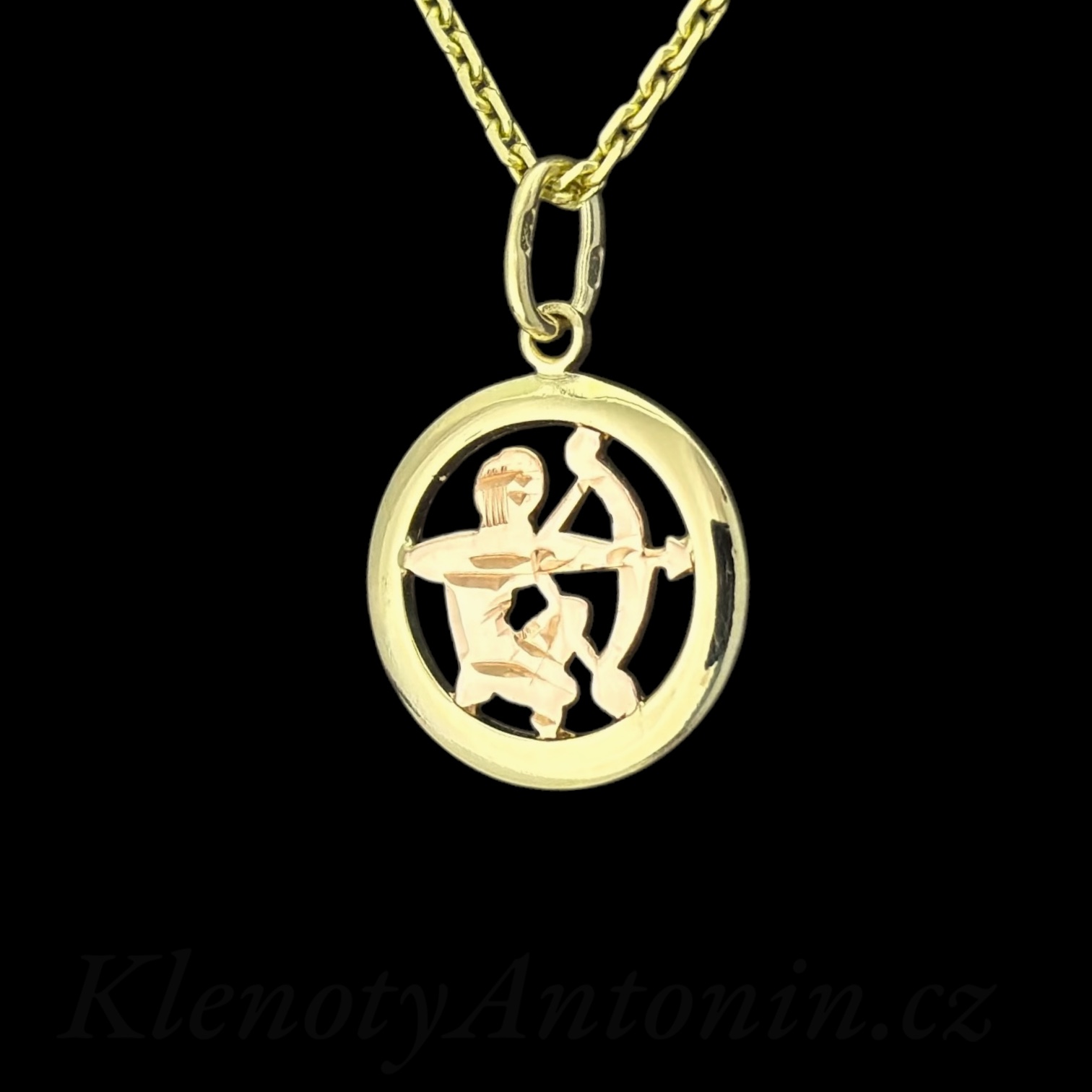 - Zlatý dvoubarevný přívěsek znamení Střelce (Au 585/1000, 0,64g)