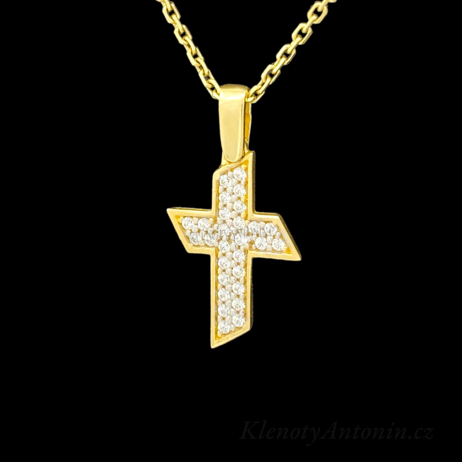 - Zlatý přívěsek křížek se zirkony 181618 (Au 585/1000, 1,32g)