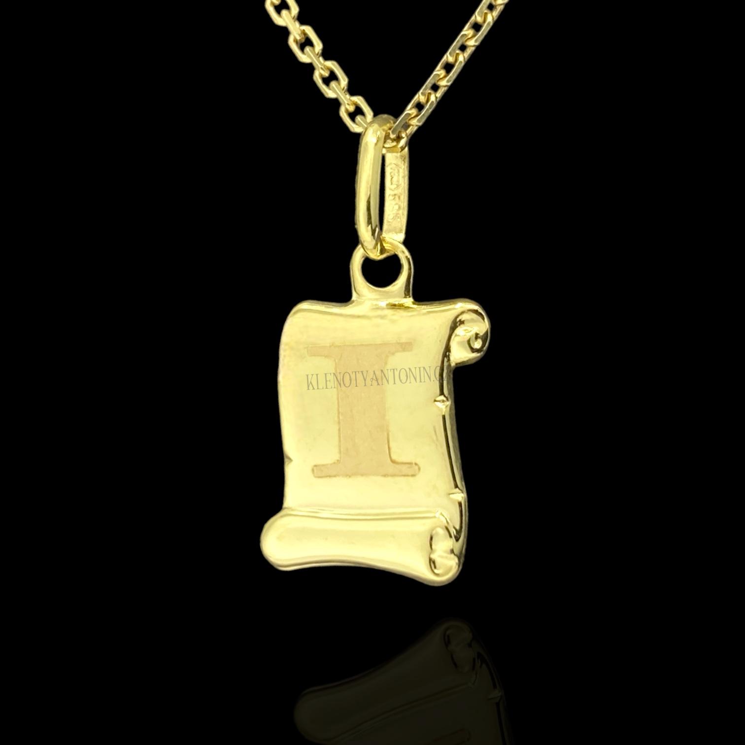 Zlatý přívěsek písmeno I v pergamenu (Au 585/1000, 0,40g)