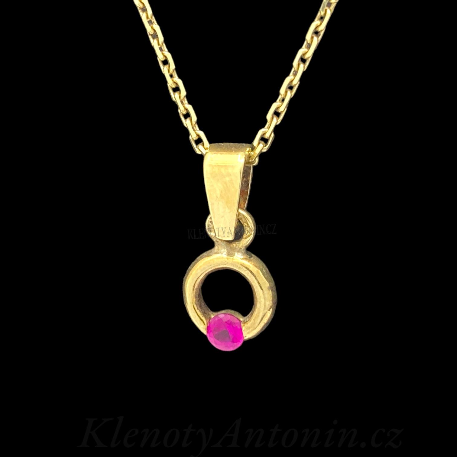 - Zlatý přívěsek s růžovým kamenem 177814 (Au 585/1000, 1,05g)