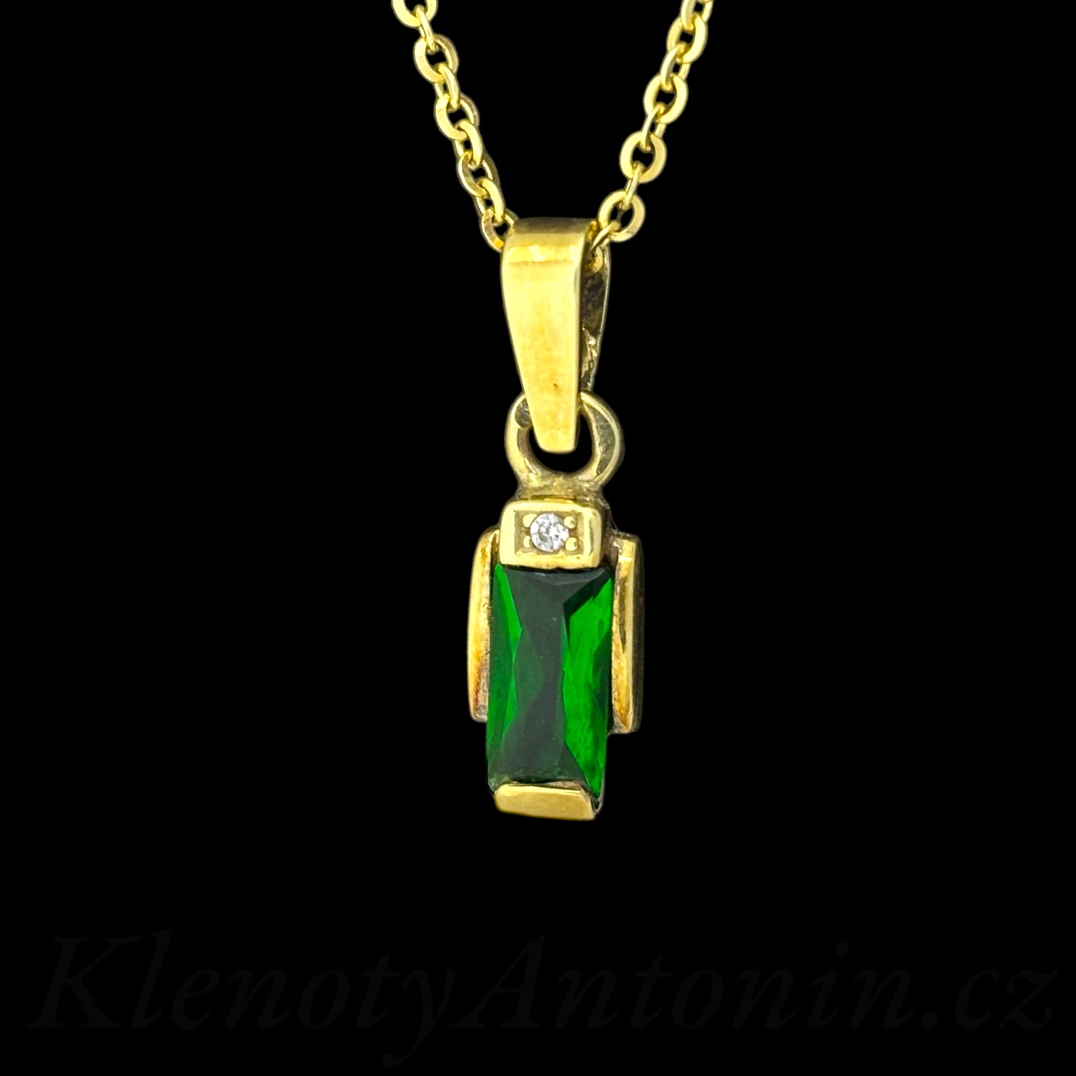 Zlatý přívěsek se zeleným kamnem a zirkonem 172892