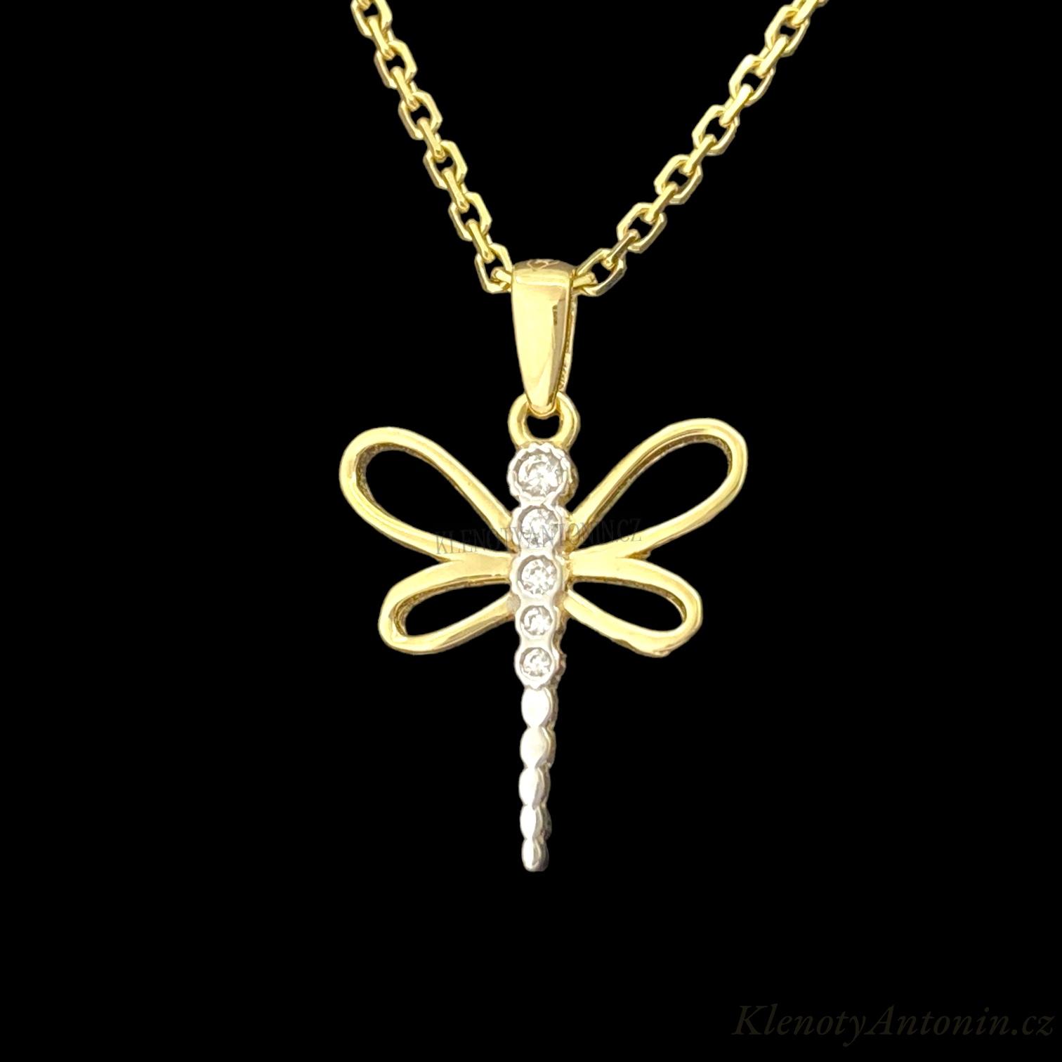 Zlatý přívěsek vážka se zirkony
