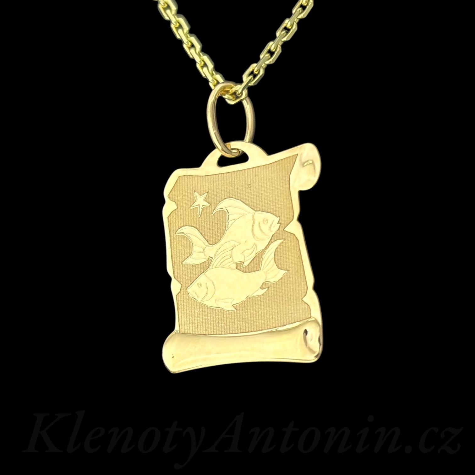 Zlatý přívěsek znamení Ryby v pergamenu (Au 585/1000, 0,53g)